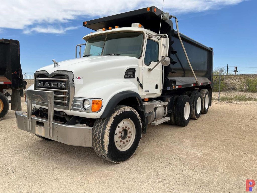 2007 MACK GRANITE DUMP TRUCK W/ TAG AXLE ODOMETER READS 352,098 MILES, METER READS 20,494 HOURS, VIN/SN: 1M2AG11C07M044984, 12L AMI-370 ENGINE, MAXITORQUE TEN SPEED MULTI-SPEED REVERSE TRANSMISSION, 370 HP, CAMEL BACK SUSPENSION, 21 YARD DUMP BED, 219” WHEEL BASE, 11R24.5 REAR TIRES, 385/65R22.5 FRONT TIRES,